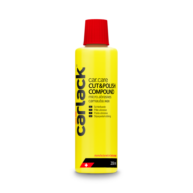 Carlack Cut&Polish Compound ist eine hochwertige Schleif- und Polierpaste mit 100% edelstem Carnauba-Naturwachsanteil und vereint im einstufigen Arbeitsprozess Schliffentfernung und Hochglanzfinish. Als Schleifmedium ist ausschließlich Aluminiumoxid enthalten, welches die Härte eines Saphirs besitzt. Carlack Cut&Polish Compound wird für die Aufbereitung von verwitterten, stumpfen Lacken eingesetzt.