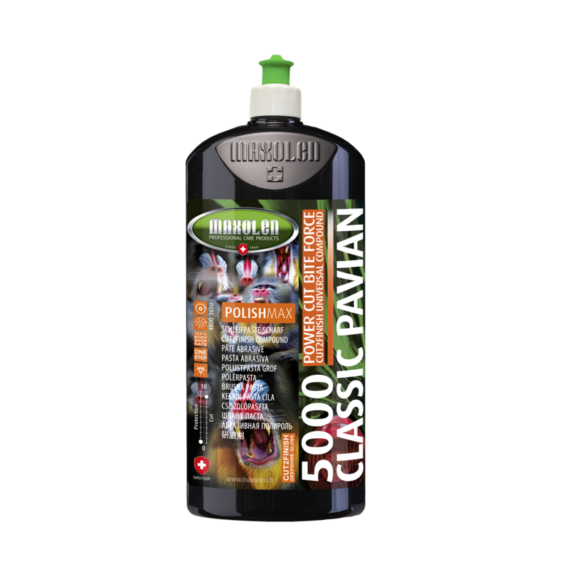 Hochleistungs-Schleifpaste zur hologrammfreien Aufarbeitung stark verwitterter Lacke, zur Beseitigung von tiefen Kratzern und zur effektiven Entfernung von Lackiernebeln und Anschliffen bis 800er Körnung. Silikonfrei.