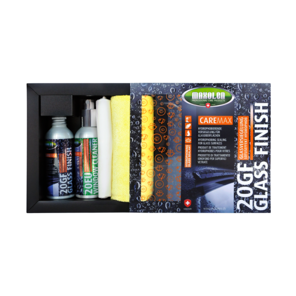 Maxolen 20GF Glass Finish ist eine hydrophobierende Beschichtung für Glasoberflächen. Maxolen 20GF Glass Finish schafft eine homogene Oberflächenstruktur und erzeugt so einen wasser- und schmutzabweisenden Effekt. Die Tropfen verbinden sich nicht mehr zu einem Film, der die Sicht trübt und werden im Fahrtwind einfach weggeblasen. Eine mit Maxolen 20GF Glass Finish versiegelte Scheibe lässt sich wesentlich einfacher reinigen.